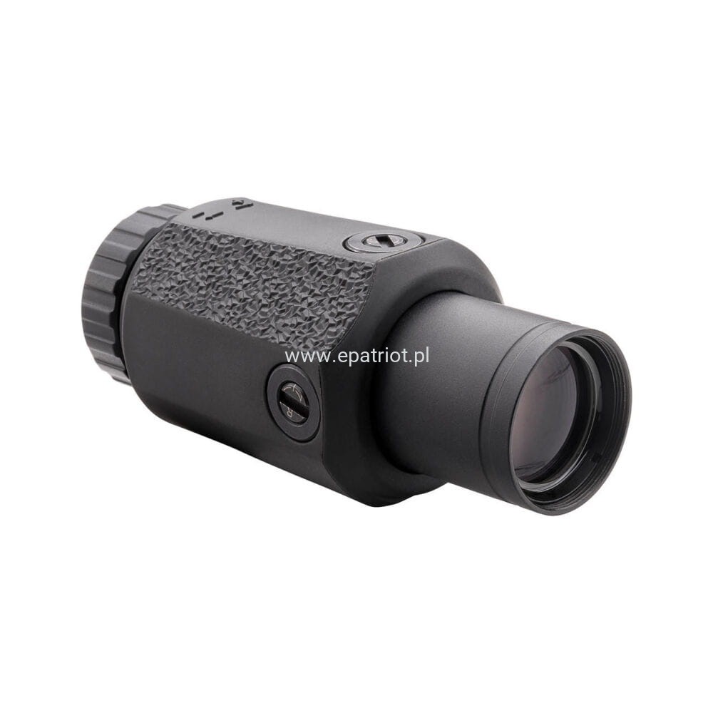 Powiększalnik Aimpoint 3X-P 200857 postawiony pomiędzy okiem a kolimatorem daje powiększenie 3x, co znacznie ułatwia celowanie na dalsze odległości. Opracowany specjalnie do profesjonalnych zastosowań. Może też być użyty jako monokular obserwacyjny. Dołożenie powiększalnika nie wymaga ponownego ustawiania plamki w kolimatorze. Przy zastosowaniu specjalnego montażu typu FlipMount (do kupienia osobno) powiĘkszalnik możNa szybko dołożyć lub odciągnąć na bok bez potrzeby jego montowania i demontowania.