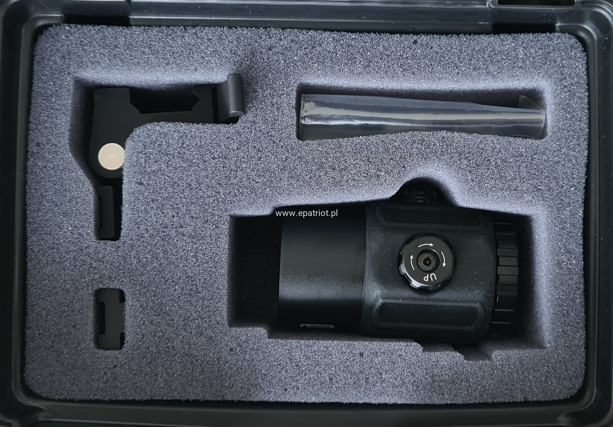 Aluminiowa obudowa wykonana jest z trwałego aluminium lotniczego pokrytego czarną anodyzowaną powłoką. Zastosowanie aluminium sprawia, że cała konstrukcja obudowy jest wytrzymała oraz lekka, pokrycie anodą uodparnia materiał na negatywne skutki warunków atmosferycznych. Powiększalnik pokryty jest dodatkową gumową osłoną aby dodatkowo uodpornić optykę na uszkodzenia mechaniczne.