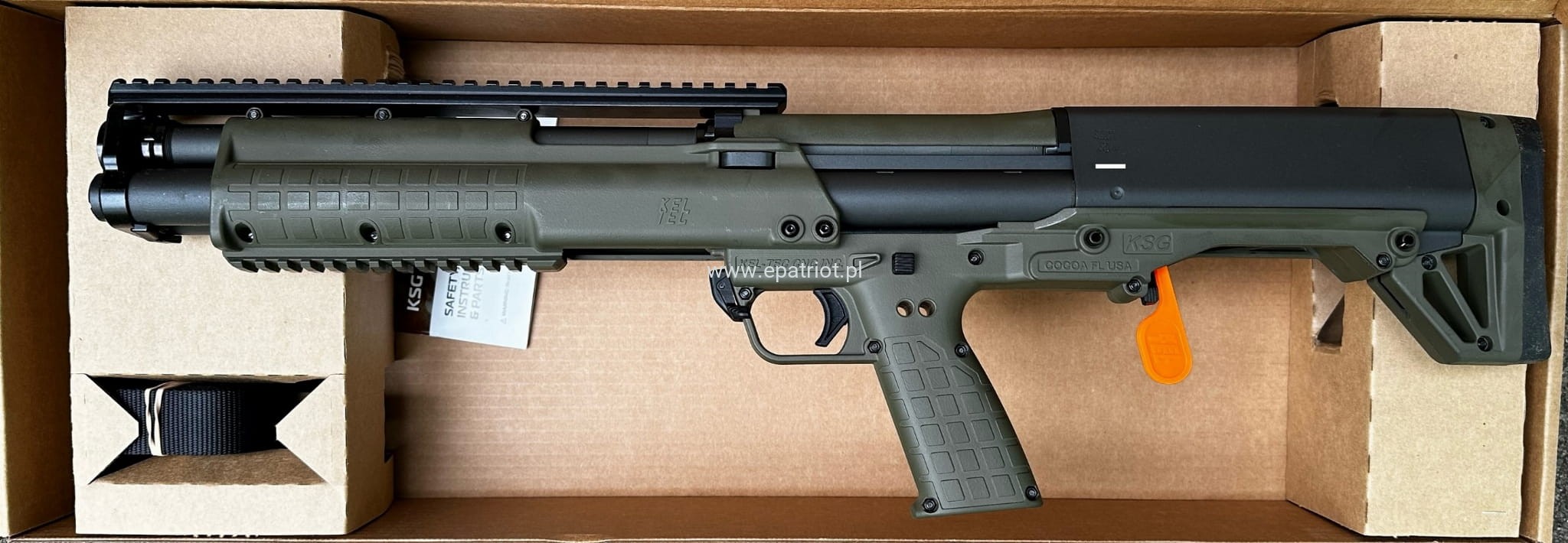 Strzelba Kel-Tec KSG zielona to strzelba powtarzalna „pump action” o kompaktowej konstrukcji bull-pup oraz dwóch magazynkach mieszczących aż 12 sztuk amunicji.