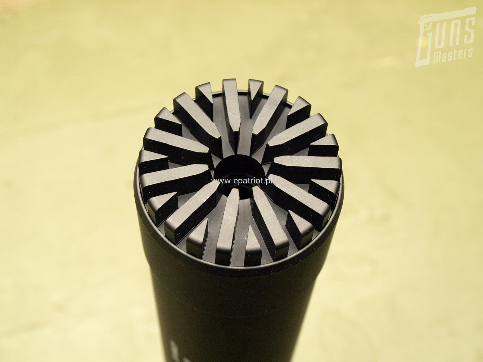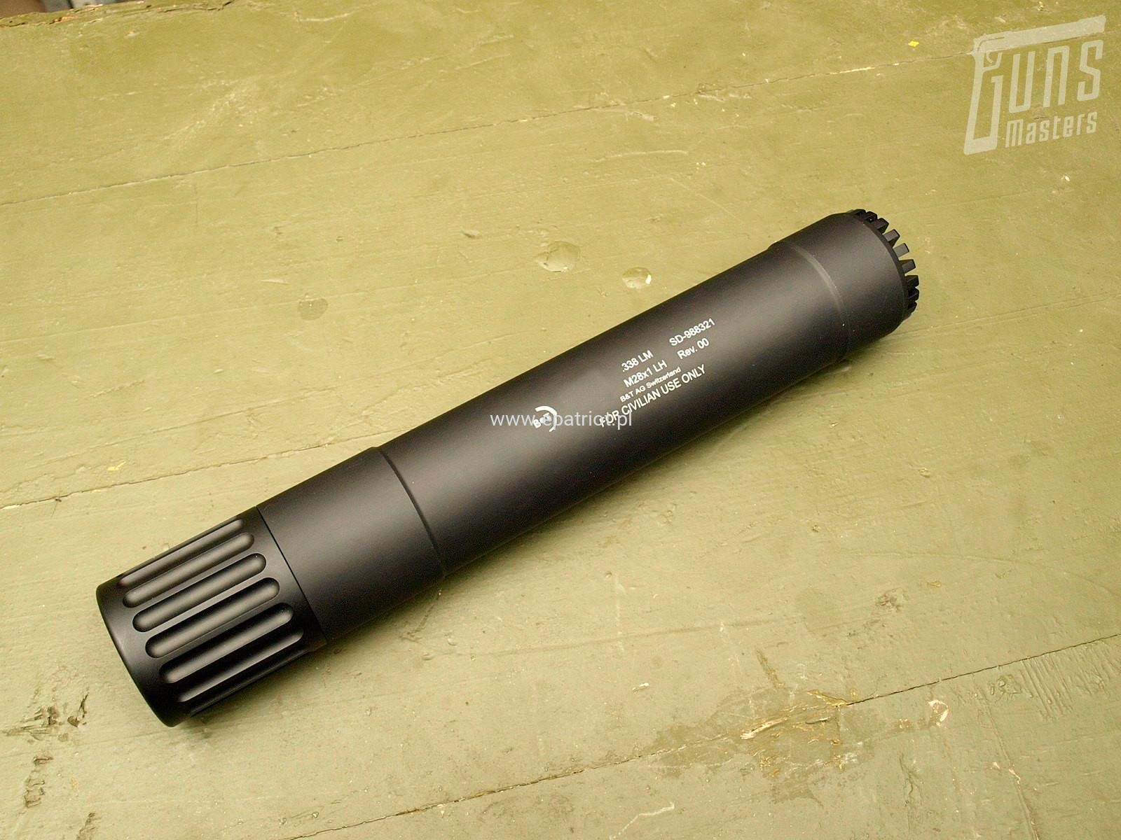 Urządzenie wylotowe B&T Monoblock kal. .338LM - jego unikalna konstrukcja jest nieco cięższa i dłuższa od tłumika myśliwskiego StarLite. Zamiast tradycyjnych komór tłumiących, Monoblock jest wyprodukowany z jednego kawałka obrobionego stopu. Ta metoda zapewnia najwyższy możliwy poziom redukcji hałasu, błysku i odrzutu dla strzelca korzystającego z karabinów kalibru magnum. Tłumik jest przystosowany do montażu na kompensator 3-komorowy B&T APR 338LM (SD-122291) lub gwint M28x1LH.