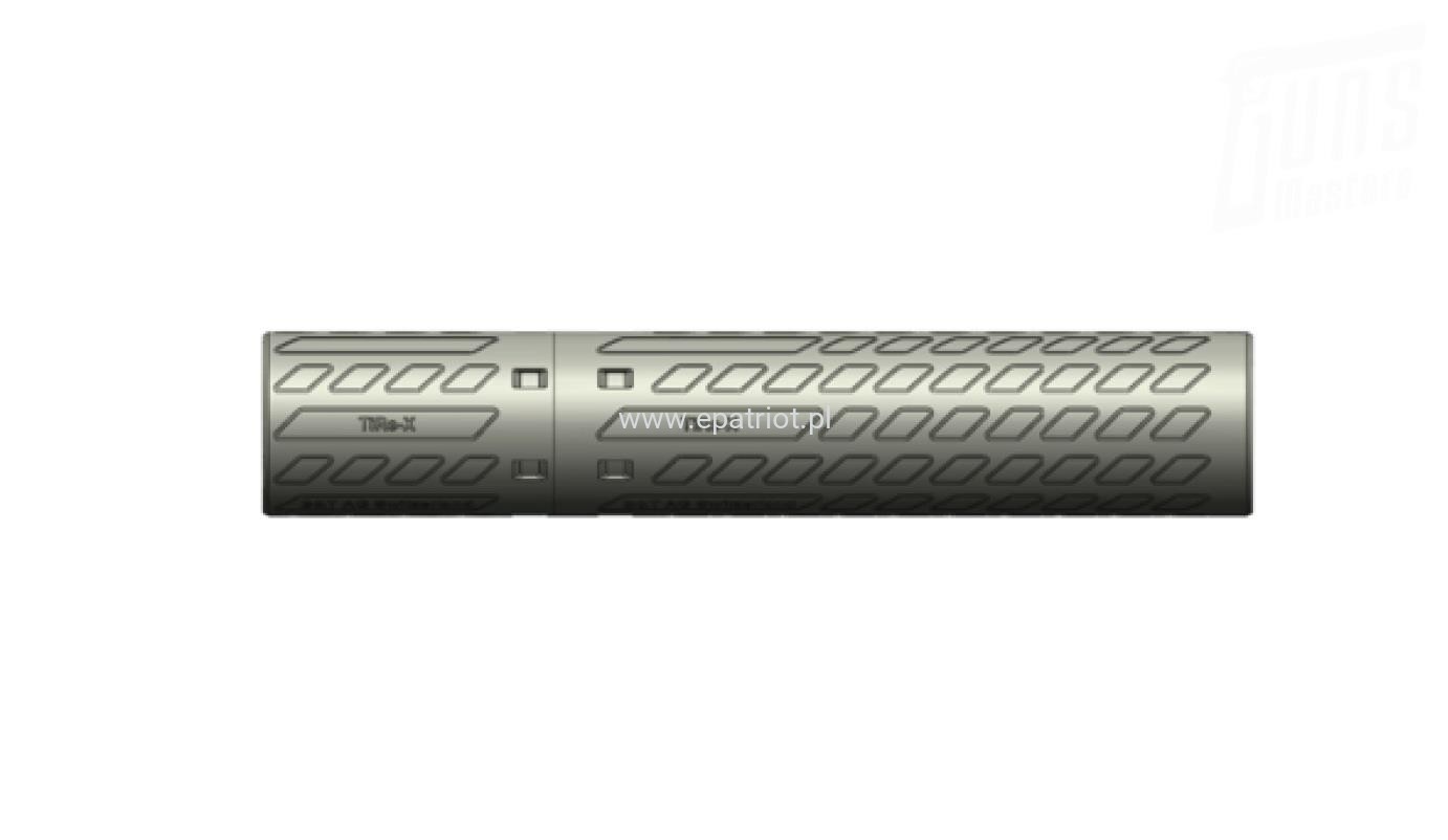 Urządzenie wylotowe B&T OVERBARREL TiRe-X kal. do 5,7mm, 1/2''-28 UNEF Direct Mount TITAN przeznaczone dla myśliwych lub strzelców precyzyjnych na duże odległości. Został wyprodukowany w technologi druku 3D z wykorzystaniem tytanu, dzieki czemu tłumik jest znacznie lżejszy. Zamiast tradycyjnych komór tłumiacych, Monoblock jest wyprodukowany z jednego kawałka obrobionego stopu. Ta metoda zapewnia najwyższy możliwy poziom redukcji hałasu, błysku i odrzutu dla strzelca korzystającego z karabinów kalibru magnum. Podobnie jak tłumiki StarLite, Monoblock został zaprojektowany tak, aby akceptował rózne adaptery gwintu karabinu, dzięki czemu użytkownik może korzystać z tego samego tłumika na różnych sztukach broni z różnymi gwintami. Dzieki temu jest jednym z najbardziej wszechstronnych urządzeń wylotowych na rynku.