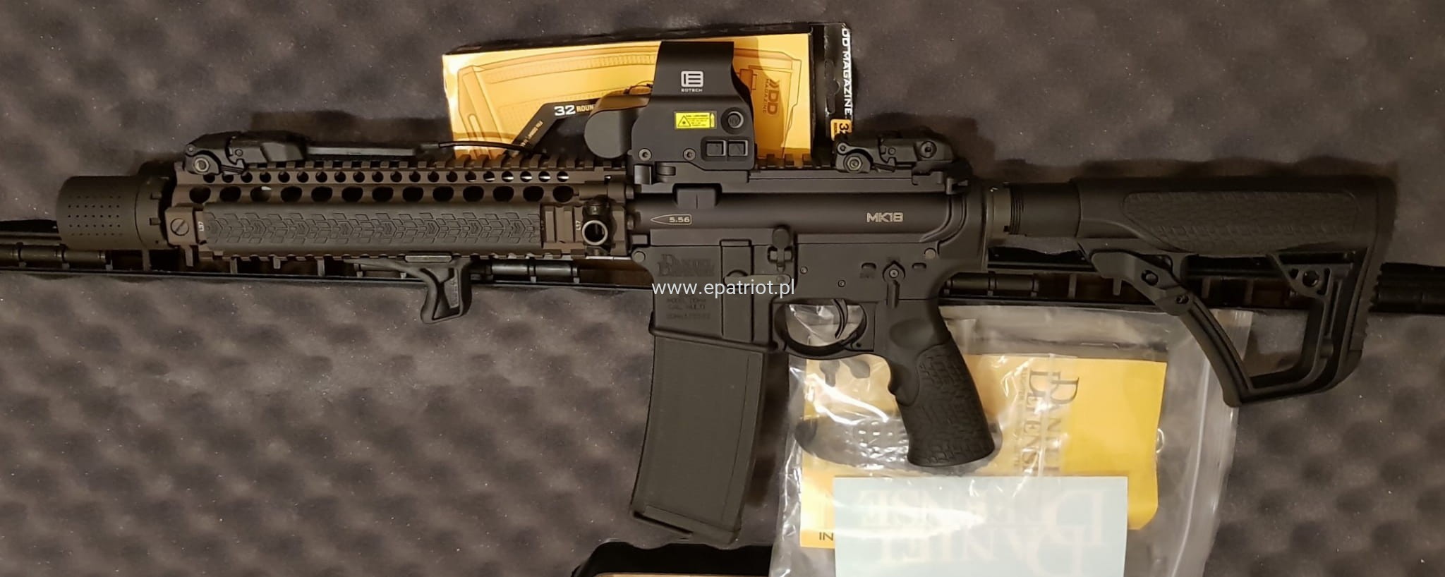 Daniel Defense słynie z produkcji karabinków najwyższej jakości dla jednostek specjalnych oraz sportowców. Model DD MK18 wyposażony jest w łoże RIS II oraz kutą na zimno 10,3" lufę.